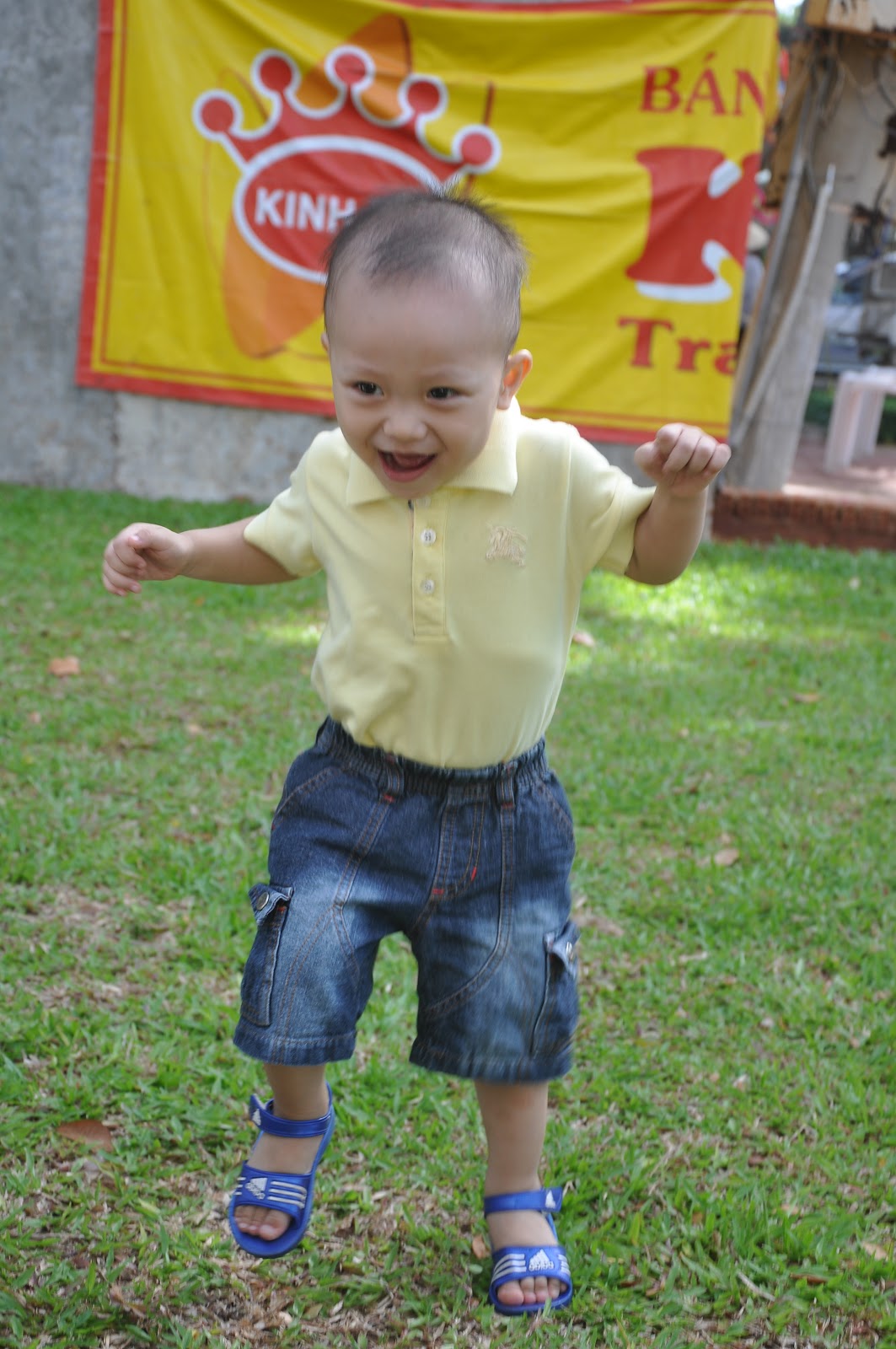 za, uống sữa no rồi, ngồi nghỉ mệt chút thôi. Nói rồi em ngồi sải lai, bung cả